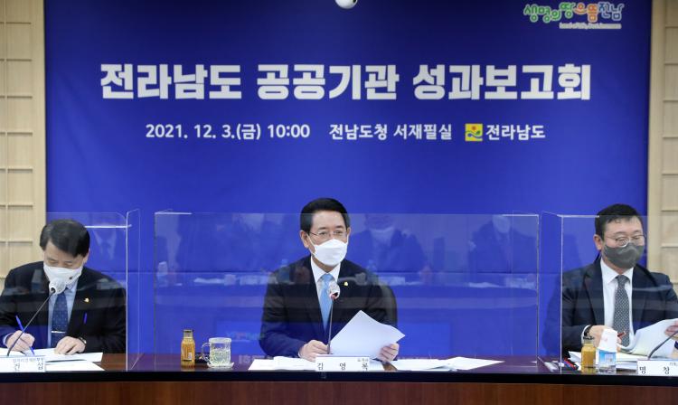 Àü³²µµ´Â 3ÀÏ µµÃ» ¼ÀçÇʽǿ¡¼ Àü³²°³¹ß°ø»ç µî µµ »êÇÏ 18°³ °ø»ç¡¤Ã⿬±â°üÀÌ ¸ð¿© ±è¿µ·Ï Áö»ç ÁÖÀç·Î ¡®Àü¶ó³²µµ °ø°ø±â°ü ¼º°úº¸°íȸ¡¯¸¦ °³ÃÖÇß´Ù.