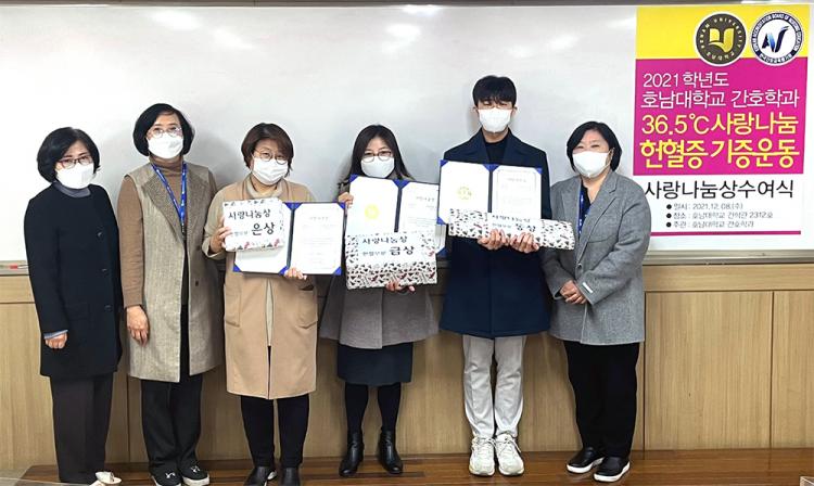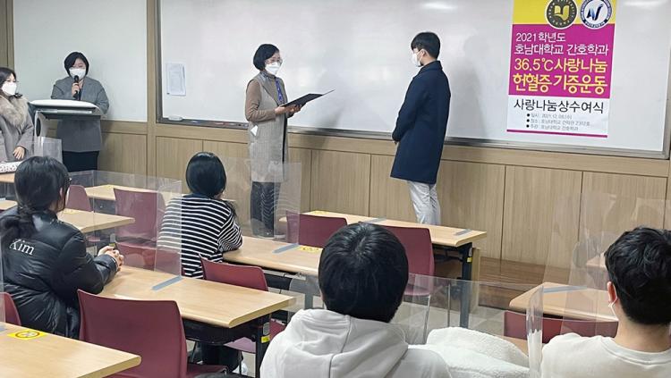 [ÅåÅå´º½º]È£³²´ëÇб³ °£È£Çаú(ÇаúÀå Á¶Àº¾Æ)´Â 12¿ù 8ÀÏ ±³³» °ÇÇаü¿¡¼ ¡®36.5¡ÆC »ç¶û³ª´® ÇåÇ÷Áõ ±âÁõ¿îµ¿¡¯ »ç¶û³ª´®»ó ¼ö¿©½ÄÀ» ½Ç½ÃÇß´Ù.