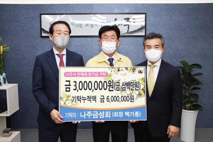 ³ªÁֽô 8ÀÏ ¡®³ªÁÖ ±Ý¼ºÈ¸¡¯¿¡¼ ÀÎÀçÀ°¼º±â±Ý 300¸¸¿øÀ» ³ªÁÖ±³À°ÁøÈïÀç´Ü¿¡ ±âŹÇß´Ù°í ¹àÇû´Ù.