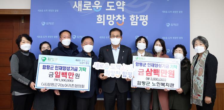 14ÀÏ ±º¿¡ µû¸£¸é ÇÔÆò±º ³ëÀκ¹Áö°ü(°üÀå ±èº¹Èñ)¿¡¼ 3¹é¸¸¿ø, (»ç)ÇÔÆò±Í³ó¾î±ÍÃÌÇùÀÇȸ(ȸÀå ¹ÚÃáÃß)¿¡¼ 1¹é¸¸¿øÀ» Àü´ÞÇß´Ù.
