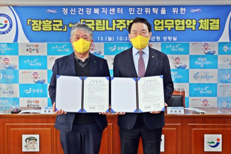 ÀåÈﱺ °ü°èÀÚ´Â ¡°À̹ø À§¡¤¼öŹ Çù¾à¿¡ µû¶ó ÀåÈﱺ°ú ±¹¸³³ªÁÖº´¿øÀº Áö¿ª»çȸ Àڻ쿹¹æ ¹× Á¤½Å°Ç°ÁõÁø»ç¾÷ÀÇ È¿À²ÀûÀÎ ÃßÁø°ú Áö¿ø ü°è ±¸Ãà¿¡ Àû±Ø Çù·ÂÇØ Áö¿ª ÁÖ¹ÎÀÇ Á¤½Å°Ç° ÁõÁø¿¡ Àû±Ø ±â¿©ÇÒ ¼ö ÀÖµµ·Ï ³ë·ÂÇϰڴ١±°í ¸»Çß´Ù.