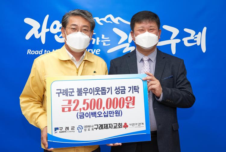 ±³ÀÎÀ» ´ëÇ¥ÇØ¼ ±âºÎ±ÝÀ» Àü´ÞÇÑ ±èµµÇü ¸ñ»ç´Â ¡°Äڷγª19¿Í À۳⠼öÇØ·Î ÀÎÇØ ¾î·Á¿òÀ» °Þ°í ÀÖ´Â ÀÌ¿ôµé¿¡°Ô ÀÛÀº ¿òÁ÷ÀÓÀÌÁö¸¸ ÀÌ·¯ÇÑ È°µ¿ÀÌ ¾Ë·ÁÁ® µû¶æÇÑ ¸¶À½µéÀÌ »çȸ·Î Èê·¯ µé¾î°¬À¸¸é ÇÑ´Ù¡±°í ¸»Çß´Ù.