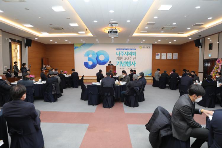 À̳¯ Çà»ç´Â ±è¿µ´ö ³ªÁÖ½ÃÀÇȸÀÇÀå°ú °ÀÎ±Ô ³ªÁÖ½ÃÀåÀ» ºñ·ÔÇØ Çö¿ªÀÇ¿ø, ¿ª´ëÀÇ¿ø µîÀÌ ÇÔ²² Âü¿©ÇÑ °¡¿îµ¥ Äڷγª19 »çȸÀû °Å¸®µÎ±â¸¦ ÁؼöÇØ ÁøÇàµÆÀ¸¸ç, 30Áֳ⠱â³ä¿µ»ó »ó¿µ, 30³â»ç Ã¥ÀÚ Àü´Þ½Ä, °ø·ÎÆÐ ½Ã»ó µîÀÇ ÀÏÁ¤À¸·Î ÁøÇàµÆ´Ù.