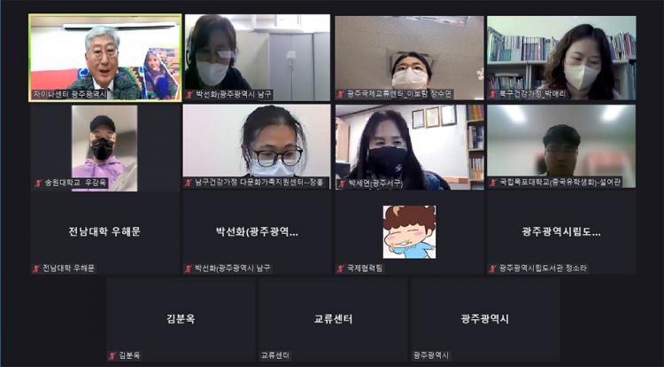 ZOOM ¿Â¶óÀÎ Ç÷§ÆûÀ» ÅëÇØ ÁøÇàµÈ À̹ø °£´ãȸ´Â ³²±¸Ã» µî ÁöÀÚü¿Í ±¤ÁÖÁö¿ª 5°³±¸ ´Ù¹®È°Ç°°¡Á¤Áö¿ø¼¾ÅÍ, 6°³ ´ëÇÐ Áß±¹ À¯Çлýȸ, ±¤ÁÖ±¹Á¦±³·ù¼¾ÅÍ µî ±¤ÁÖÁö¿ª °ü·Ã Ä¿¹Â´ÏƼ 20¿©°³ ±â°üÀÌ Âü¿©ÇßÀ¸¸ç, °¢ ±â°üº° ÁÖ¿ä ÇÁ·Î±×·¥ ¼Ò°³ ¹× ÇϹݱâ ÀÏÁ¤À» °øÀ¯ÇÏ°í ´Ù¾çÇÑ °øµ¿ Çù·Â ÇÁ·Î±×·¥µéÀ» ¸ð»öÇß´Ù.
