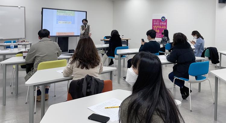¿Ü±¹ÀÎ À¯Çлý »ó´ãÁöµµ±³¼ö 20¸íÀ» ´ë»óÀ¸·Î ÁøÇàµÈ À̳¯ ¿öÅ©¼ó¿¡¼´Â ±è¹Ì·Ê Çлý»ó´ã¼¾ÅÍÀåÀÇ ¡®Çлý¸é´ã ±â¹ý¡¯ °¿¬°ú ¿Õ·ç ±¹Á¦±³À°Áö¿ø½ÇÀåÀÇ 2021Çг⵵ 2Çб⠿ì¼ö »ó´ã »ç·Ê ¹ßÇ¥ ¹× »ç·Ê °¡À̵å Á¦½Ã, ÀÚÀ¯Åä·ÐÀÌ À̾îÁ³´Ù.