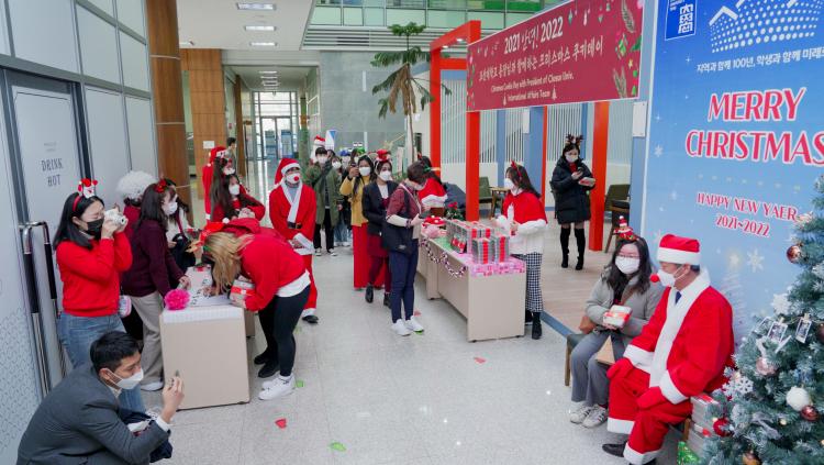 ÇлýµéÀº Å©¸®½º¸¶½º Çà»ç¿¡ ¸ÂÃç »¡°£»ö°ú ÃÊ·Ï»ö ÀÇ»óÀ» °®Ãç ÀÔÀº µÚ ±â³äÃÔ¿µÀ» ÁøÇàÇßÀ¸¸ç °¨»çÆíÁö¸¦ ÀüÇϱ⵵ Çß´Ù.