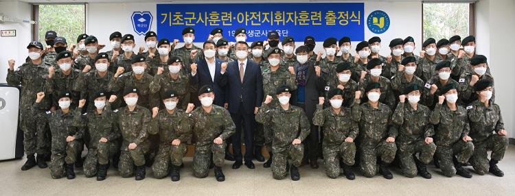 ¹Ú»óö È£³²´ëÇб³ ÃÑÀå µî ´ëÇаü°èÀÚ¿Í Çбº´ÜÀå, Çбº»ç°üÈ帻ý(4Çгâ 23¸í, 2Çгâ 21¸í)ÀÌ Âü¼®ÇÑ À̳¯ ÃâÁ¤½Ä¿¡¼ È帻ýµéÀº µ¿°èÈÆ·ÃÀ» ÅëÇØ °ÀÎÇÑ Á¤½Å·Â°ú ÀüÅõÁöÈÖ´É·ÂÀ» ÇÔ¾çÇÒ °ÍÀ» ´ÙÁüÇß´Ù.