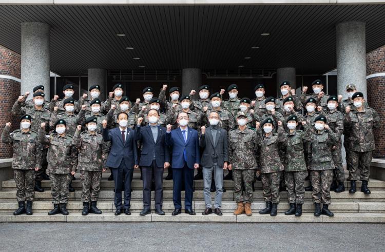 ¡Ø »çÁø¼³¸í : ±¤ÁÖ´ëÇб³ Çлý±º»ç±³À°´ÜÀÌ Áö³ 24ÀÏ Çб³ ÇàÁ¤°ü¿¡¼ ¡®2021³â µ¿°èÀÔ¿µ ÈÆ·Ã¡¯ ÃâÁ¤½ÄÀ» °¡Áø °¡¿îµ¥ ±èÇõÁ¾(°¡¿îµ¥) ÃÑÀå µîÀÌ 30¸íÀÇ 4Çгâ È帻ý°ú ±â³ä ÃÔ¿µÀ» ÇÏ¸ç °Ç½ÂÀ» ´ÙÁüÇß´Ù.