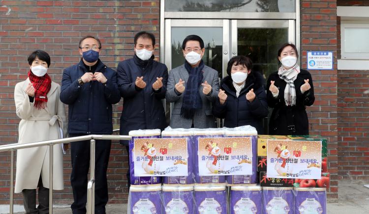 [ÅåÅå´º½º] ±è¿µ·Ï Àü¶ó³²µµÁö»ç´Â 25ÀÏ ¼ºÅºÀýÀ» ¸Â¾Æ ¿¬¸» ÀÌ¿ô»ç¶û ³ª´® ºÐÀ§±â È®»êÀ» À§ÇØ ¾Æµ¿¾çÀ°½Ã¼³ ¸ñÆ÷ ¡®¼º´ö¿ø¡¯°ú ÇÔÆò ¡®»ï¾Ö¿ø¡¯À» ÀÕµû¶ó ¹æ¹®ÇØ Á¾»çÀÚµéÀÇ ³ë°í¸¦ °Ý·ÁÇß´Ù.