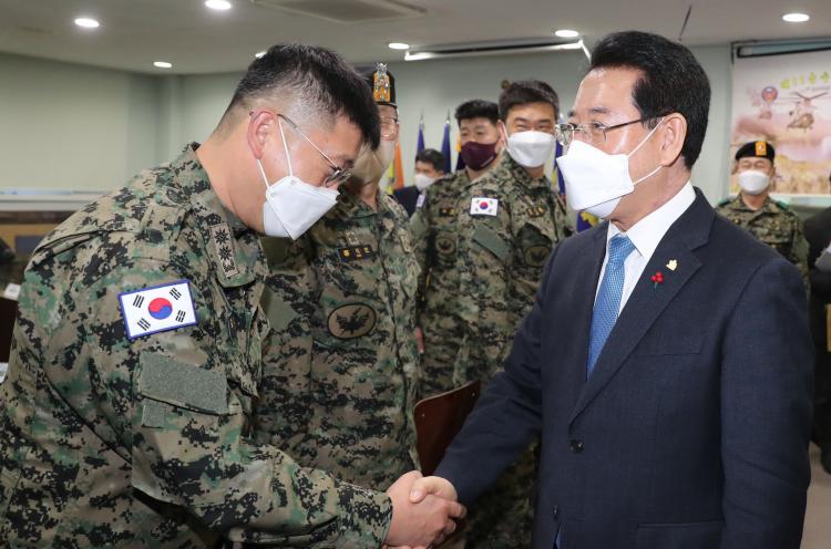 ÀÌ¾î ºÎ´ë ÇöȲ ºê¸®ÇÎÀ» ûÃëÇÑ ±è Áö»ç´Â ¡°11°ø¼öƯÀü¿©´ÜÀº Àü½Ã ÀÓ¹«ÀΠƯ¼öÁ¤Âû, ºñÁ¤±ÔÀü, ¾ÈÁ¤È ÀÛÀüÀ» À§ÇØ Æò¼Ò ±³À°ÈƷðú °æ°è ÀÛÀü¿¡ ¸ÅÁøÇÏ´Â ¸í½Ç°øÈ÷ ´ëÇѹα¹ ÃÖ°ÀÇ ÀüÅõ·ÂÀ» º¸À¯ÇÑ ºÎ´ë¡±¶ó¸ç ¡°°Ç½ÇÇÑ ºÎ´ë °ü¸®¸¦ ±â¹ÝÀ¸·Î ±¹°¡ÀÇ ¾Èº¸¸¦ Ã¥ÀÓÁö°í Àü³²µµ¹ÎÀÇ »ý¸í°ú Àç»êÀ» ÁöŰ´Â ºÎ´ë·Î ½Â½ÂÀ屸ÇÏ±æ ¹Ù¶õ´Ù¡±°í ¸»Çß´Ù.