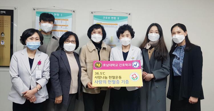 ÇÑÆí, °£È£Çаú´Â Ç÷¾×¼ö±Þ¿¡ ¾î·Á¿òÀ» °Þ°í ÀÖ´Â ±¹°¡Àû ½ÇÁ¤À» ÀνÄÇϰí, ³ªÀÌÆÃ°ÔÀÏÀÇ °£È£Á¤½ÅÀ» °è½ÂÇÑ »ç¶û°ú ºÀ»ç¸¦ ¸ö¼Ò ½ÇõÇϱâ À§ÇØ Áö³ 2014³âºÎÅÍ ¸Å³â ¡®36.5¡É »ç¶û³ª´® ÇåÇ÷¿îµ¿¡¯À» ½Ç½Ã, Àü³²´ëÇб³º´¿ø¿¡ ÇåÇ÷ÁõÀ» ±âÁõÇϰí ÀÖ´Ù.