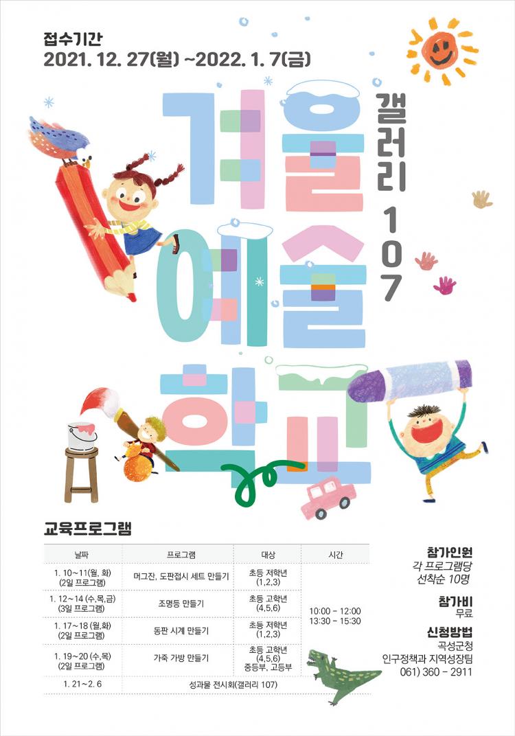 °î¼º±º °Ü¿ï¿¹¼úÇб³´Â °î¼ºÀ¾ °¶·¯¸®107¿¡¼ ³»³â 1¿ù 10ÀϺÎÅÍ 20ÀϱîÁö ¿î¿µµÉ ¿¹Á¤ÀÌ´Ù. Áö¿ª ÇлýµéÀ» ´ë»óÀ¸·Î ÃÑ 4°¡Áö ÇÁ·Î±×·¥ÀÌ ÁøÇàµÇ¸ç Âü°¡ÀοøÀº °¢ ÇÁ·Î±×·¥º°·Î 10¸í¾¿ ¼±Âø¼øÀ¸·Î ¼±¹ßÇÑ´Ù.
