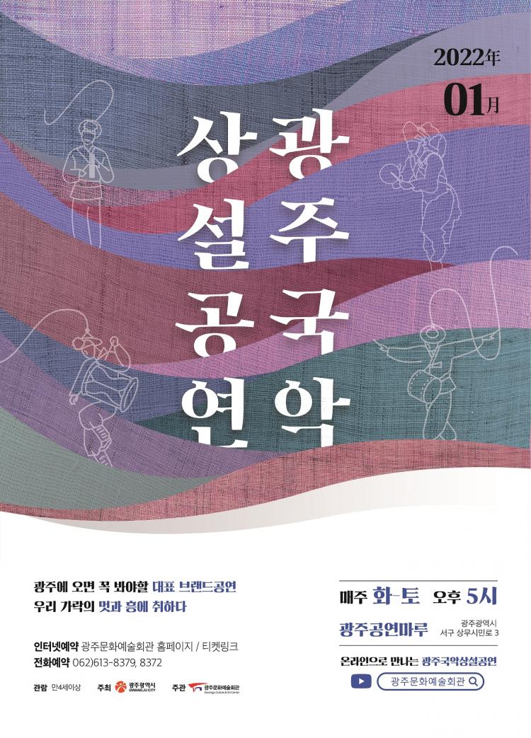 ¡®±¤ÁÖ±¹¾Ç»ó¼³°ø¿¬¡¯Àº 2019³âºÎÅÍ ¸ÅÁÖ È~Åä¿äÀÏ, ¿ÀÈÄ 5½Ã, ±¤ÁÖ°ø¿¬¸¶·ç¿¡¼ ¡®±¹¾Ç¡¯À» ÁÖÁ¦·Î °¢ Ã⿬´Üüº° Ư»öÀÖ´Â °ø¿¬À» ¼±º¸À̰í ÀÖ´Ù. ƯÈ÷ ¡®ÀüÅ뿹¼úÀº ³°Àº °Í¡¯À̶ó´Â °íÁ¤°ü³äÀ» ±ú°í ³²³à³ë¼Ò ´©±¸³ª Áñ±æ ¼ö ÀÖ´Â ´Ùä·Î¿î ±¹¾Ç¹«´ë¸¦ ¼±»çÇØ È£ÀÀÀ» ¾ò¾î¿Ô´Ù.
