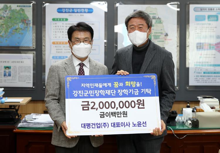 ³ëÀ±¼± ´ëÇ¥ÀÌ»ç´Â ¡°±è±â¿µ ´ëÇ¥·ÎºÎÅÍ °Áø ÀÎÀç À°¼º¿¡ Å« ¿ªÇÒÀ» ÇÏ´Â °Áø±º¹ÎÀåÇÐÀç´Ü¿¡ ´ëÇØ µè°í Àú ¶ÇÇÑ Áö¿ªÀÎÀç ¾ç¼º°ú ÀÚ¹ßÀû ±âºÎ¹®È È®»ê¿¡ µ¿ÂüÇϰíÀÚ ÀåÇбÝÀ» ±âŹÇÏ°Ô µÆ´Ù¡±¸ç ¡°ÀûÀº ±Ý¾×ÀÌÁö¸¸ °Áø ÇлýµéÀÌ ÈǸ¢ÇÑ ÀÎÀç·Î ¼ºÀåÇÏ´Â µ¥ µµ¿òÀÌ µÇ±æ ¹Ù¶õ´Ù¡±°í ù ±âŹ ¼Ò°¨À» ÀüÇß´Ù.
