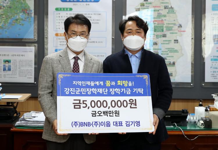 °Áø±º¹ÎÀåÇÐÀç´Ü(ÀÌ»çÀå À̽¿Á)Àº Áö³ 28ÀÏ ¢ßBNB‧¢ßÀÌÀ½(´ëÇ¥ ±è±â¿µ)¿¡¼ 5¹é¸¸¿ø, ´ëÆò°Ç¾÷¢ß(´ëÇ¥ÀÌ»ç ³ëÀ±¼±)¿¡¼ 2¹é¸¸ ¿øÀÇ ÀåÇбÝÀ» ±âŹÇß´Ù°í ¹àÇû´Ù.