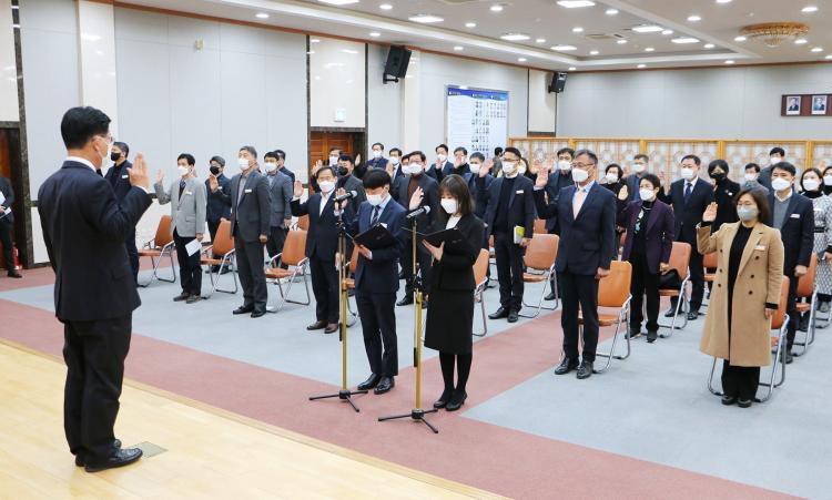 À̳¯ ¿ÀÀü 10½Ã û»ç ´ëȸÀǽǿ¡¼ ¿¸° ½Ã¹«½ÄÀº ½ÃÀå, ºÎ½ÃÀå, ±¹¡¤¼ÒÀå, ½Ç¡¤°ú ºÎ¼Àå, À¾¡¤¸é¡¤µ¿Àå µî 60¿©¸íÀÌ Âü¼®ÇÑ °¡¿îµ¥ »õÇØ Àλç, °ø¹«¿ø ÇåÀå³¶µ¶, ½Å³â»ç, ½Å³â´ÙÁü °áÀǹ® ³¶µ¶ ¼øÀ¸·Î ÁøÇàµÆ´Ù.