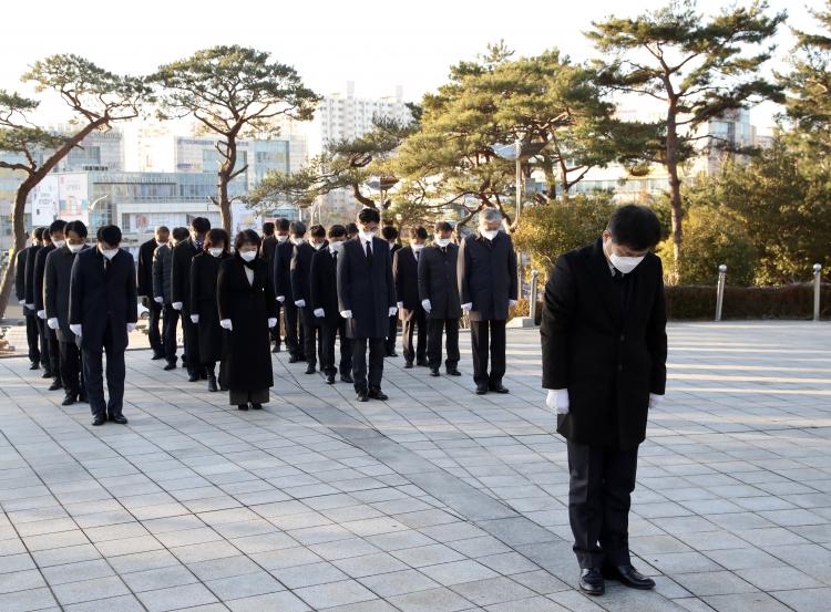 À̳¯ ½Ã¹«½ÄÀº Äڷγª19 °¨¿° ¿¹¹æÀ» À§ÇØ Àå¼®¿õ ±³À°°¨À» ºñ·ÔÇÑ °£ºÎÁø°ú °¢ ½Ç¡¤°ú º° ´ëÇ¥ Á÷¿ø, ¿ì¼ö¡¤¸ð¹ü °ø¹«¿øÁõ¼ Àü¼ö ´ë»óÀÚ µîÀ¸·Î Âü¼® ÀοøÀ» ÃÖ¼ÒÈÇÏ°í ¹æ¿ª¼öÄ¢À» ÁؼöÇÑ °¡¿îµ¥ ÁøÇàµÆ´Ù. ³ª¸ÓÁö Á÷¿øµéÀº °¢ÀÚÀÇ »ç¹«½Ç¿¡¼ û ³» ¿µ»ó ½Ã½ºÅÛÀ» ÅëÇØ ½Ã¹«½Ä¿¡ Âü¼®Çß´Ù.