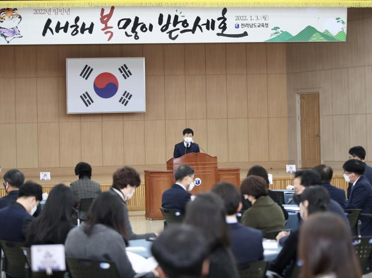 [ÅåÅå´º½º] Àü¶ó³²µµ±³À°Ã»(±³À°°¨ Àå¼®¿õ)ÀÌ 3ÀÏ(¿ù) ¿ÀÀü û»ç 2Ãþ ´ëȸÀǽǿ¡¼ 2022³â ½Ã¹«½ÄÀ» °®°í ¡®Èñ¸ÁÀÇ 2022³â¡¯ »õ Ãâ¹ßÀ» ´ÙÁüÇß´Ù.