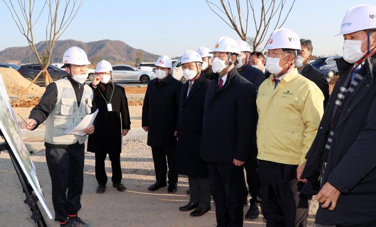 ÇöÀå¿¡¼ °ø»ç °ü°èÀڷκÎÅÍ °ø»ç ÁøÇà ÃßÁø »óȲ µîÀ» µè°í, ƯÈ÷ ȤÇѱâ¿Í ÇØºù±â °Ç¼³ ÇöÀåÀÇ ¾ÈÀü »ç°í ¹æÁö¸¦ À§ÇÑ ÇöÀå°ü¸®¿Í Äڷγª19 Áö¿ª ÀüÆÄ ¹æÁö¸¦ À§ÇÑ ÇöÀ广¿ª öÀú µîÀ» °Á¶Çß´Ù.