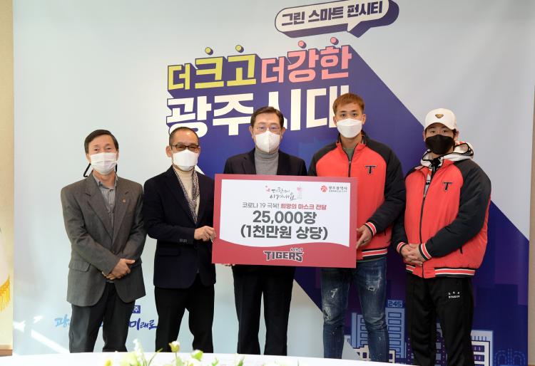 KIAŸÀ̰ÅÁî ¼±¼ö´ÜÀº Äڷγª19 ±Øº¹À» À§ÇÑ Ãë¾à°èÃþ Áö¿øÀ» À§ÇØ Èñ¸ÁÀÇ ¸¶½ºÅ© 2¸¸5000Àå(1000¸¸¿ø »ó´ç)À» ±¤ÁÖÀå¾ÖÀÎÁ÷¾÷ÀçȰ½Ã¼³ 29°÷¿¡ ÁöÁ¤ ±âŹÇß´Ù.