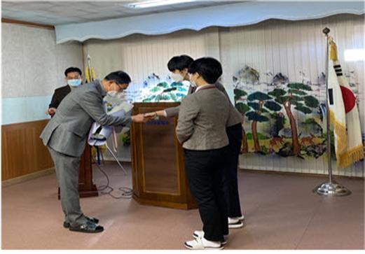 ÃëÀÓ½ÄÀº Äڷγª19·Î ÃÖ¼ÒÀοø°ú °£¼ÒÇÑ ½Ä¼ø ¼Ó¿¡ ´ë¸é ¹× ºñ´ë¸éÀ¸·Î ÁøÇàÇßÀ¸¸ç, Çб³¹ýÀÎ µµ¿¬Çпø Á¶Àϱ٠ÀÌ»ç, Á¤¿î ÀÌ»ç, Çб³¿î¿µÀ§¿øÈ¸ À§¿øÀå, ±³Á÷¿ø µîÀÌ Âü¼®Çß´Ù.