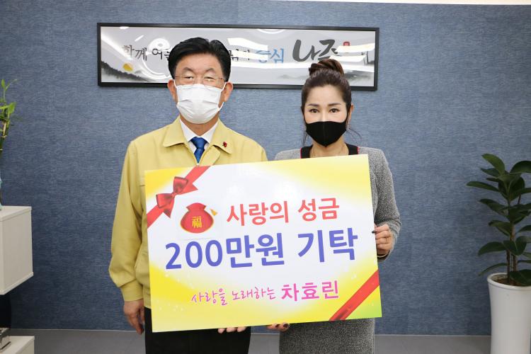 °ÀÎ±Ô ³ªÁÖ½ÃÀåÀº ¡°Äڷγª ½Ã±¹¿¡ ¿¹¼úÀεéÀÇ È°µ¿¿¡ ¾î·Á¿òÀÌ ÀÖÀ» ÅÙµ¥ °íÇ⠺еéÀ» À§ÇÑ »õÇØ µû¶æÇÑ ¼º±ÝÀ» ±âÅ¹ÇØÁØ Â÷È¿¸° ¾¾¿¡°Ô °¨»çµå¸°´Ù¡±¸ç ¡°¿À·£ ½Ã°£ Áö¿ª¹Îµé¿¡°Ô »ç¶û¹Þ´Â °¡¼ö°¡ µÇ±æ ±â¿øÇϰí ÀÀ¿øÇÑ´Ù¡±°í È´äÇß´Ù.