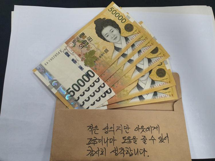 27ÀÏ¿¡´Â À̸§À» ¹àÈ÷Áö ¾ÊÀº ÇÑ ÁÖ¹ÎÀÌ ¡®ÀÛÀº ¼ºÀÇÁö¸¸ ÀÌ¿ô¿¡°Ô Á¶±ÝÀ̳ª¸¶ µµ¿òÀ» ÁÙ ¼ö ÀÖ¾î °¨»çÈ÷ »ý°¢ÇÕ´Ï´Ù.¡¯ ¶ó°í ÀûÈù ºÀÅõ ¾È¿¡ 30¸¸¿øÀ» ´ã¾Æ ÀüÇØ¿Ô´Ù.