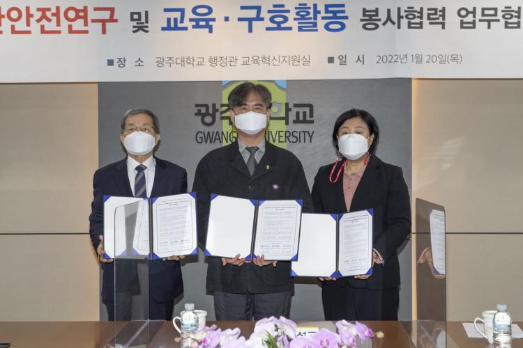 Àç³¾ÈÀü ¿¬±¸ ¹× ±³À°¡¤±¸È£ Ȱµ¿ ºÀ»ç Çù·ÂÀ» À§ÇÑ À̹ø Çù¾àü°á½Ä¿¡´Â ½Å¼®±Õ ±¤ÁÖ´ë °ø°ú´ëÇÐÀå°ú ±èÁ¤Èñ Èñ¸Áºê¸®Áö Àü±¹ÀçÇØ±¸È£Çùȸ »ç¹«ÃÑÀå, Á¤»ó¸¸ Çѱ¹Àç³¾ÈÀü±â¼ú¿ø ¿øÀåÀ» ºñ·ÔÇØ °¢ ±â°ü °ü°èÀÚµéÀÌ Âü¼®ÇØ ¿·È´Ù.