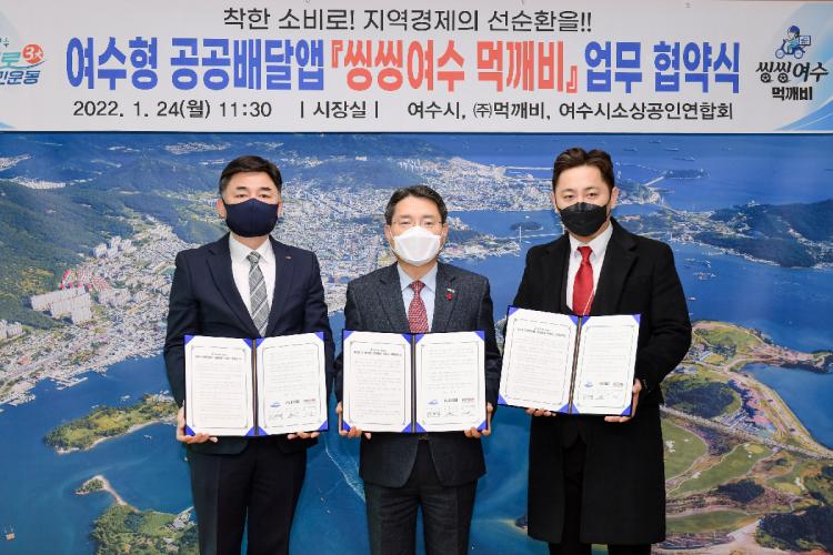 À̳¯ Çù¾à½Ä¿¡´Â ±Ç¿ÀºÀ ¿©¼ö½ÃÀå, ±èµµÇü ¢ß¸Ô±úºñ ´ëÇ¥ÀÌ»ç, ¹Ú±ââ ¿©¼ö½Ã¼Ò»ó°øÀο¬ÇÕȸÀåÀÌ Âü¼®ÇØ ¼Ò»ó°øÀÎ º¸È£¿Í Áö¿ª°æÁ¦ Ȱ¼ºÈ¸¦ À§ÇÑ Çù·ÂÀ» ´ÙÁüÇß´Ù.