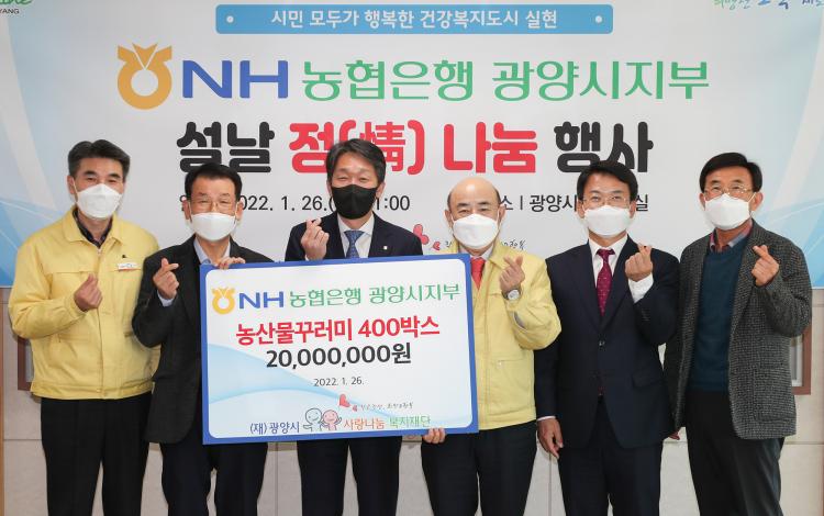 Á¤Çöº¹ ±¤¾ç½ÃÀåÀº ¡°¼³ ¸íÀýÀ» ¸Â¾Æ ¿ì¸® ³ó»ê¹°À» Áö¿øÇØ Áּż NH³óÇùÀºÇà¿¡ °¨»çµå¸°´Ù¡±¸ç, ¡°±âÅ¹ÇØ Áֽгó»ê¹° ²Ù·¯¹Ì´Â µû¶æÇÑ ¼³À» º¸³»µµ·Ï Áö¿ª ³» Àú¼Òµæ Ãë¾à°èÃþ¿¡ Àü´ÞÇϰڴ١±°í ¸»Çß´Ù.