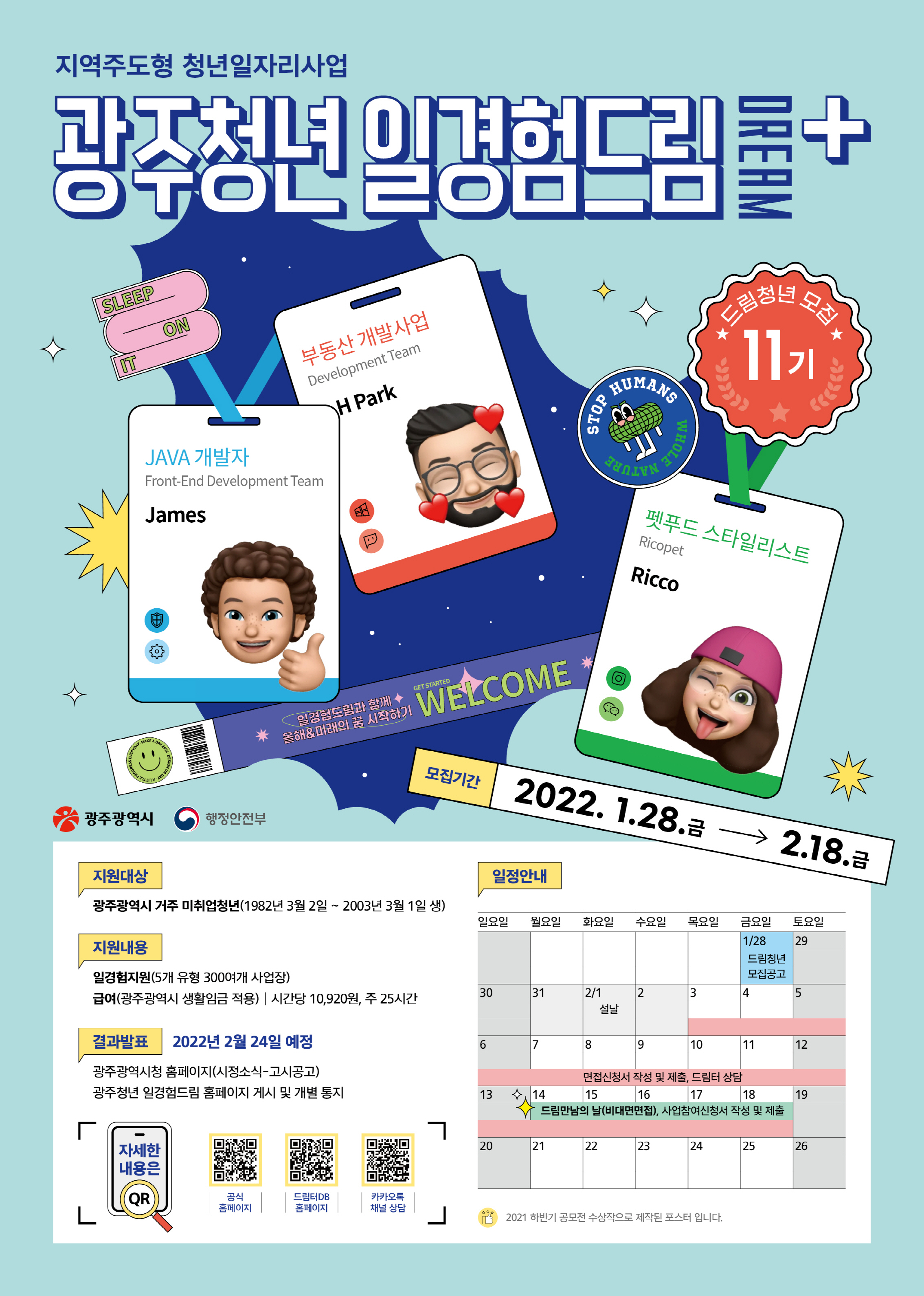 ¡®±¤ÁÖû³â ÀϰæÇèµå¸²+¡¯ »ç¾÷Àº 2022³â ÇàÁ¤¾ÈÀüºÎ Áö¿ªÁÖµµÇü û³âÀÏÀÚ¸® »ç¾÷À¸·Î ¼±Á¤µÅ ±âÁ¸ 5°³¿ù°£ ½Ç½ÃÇÏ´ø ÀϰæÇè°ú ÇÔ²² Á÷¹«Å½»ö, Á÷¹«½ÉÈ Æ®·¢ÀÌ Ãß°¡µÈ´Ù.