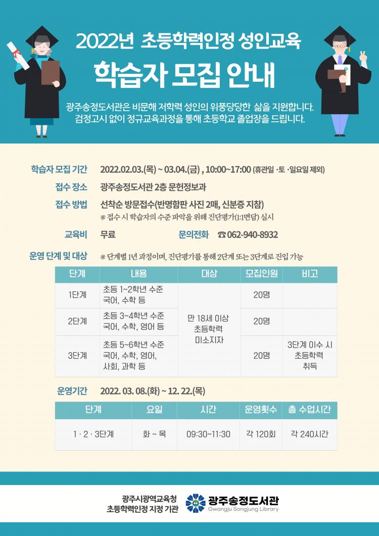 ¡®2022Çг⵵ ÃʵîÇзÂÀÎÁ¤ ¼ºÀα³À°¡¯Àº 1~3´Ü°è·Î ¿î¿µµÇ°í, °¢ ´Ü°èº°·Î 20¸í¾¿ ÃÑ 60¸íÀ» ¸ðÁýÇÑ´Ù. ÇØ´ç ±³À°Àº ÃʵîÇб³¸¦ Á¹¾÷ÇÏÁö ¸øÇÑ ¸¸ 18¼¼ ÀÌ»ó ºñ¹®ÇØ ¹× ÀúÇз ¼ºÀÎÀ» ´ë»óÀ¸·Î ÇÑ´Ù.