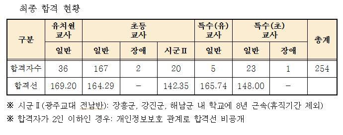¸ðÁý ºÐ¾ßº°·Î À¯Ä¡¿ø 36¸í, ÃʵîÇб³ 189¸í, Ư¼öÇб³(À¯Ä¡¿ø) 5¸í, Ư¼öÇб³(Ãʵî) 24¸íÀ̸ç, ÃʵîÇб³ ±³»ç ³²¼º ÇÕ°ÝÀÚ ºñÀ²Àº 37.04%(70¸í)·Î ³ªÅ¸³µ´Ù.