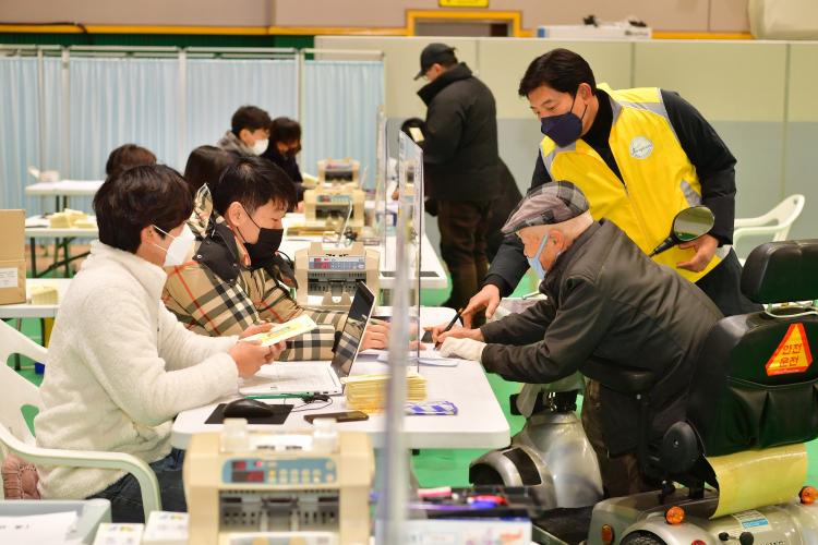 ±ºÀº ¾Õ¼± 1¿ù 17ÀϺÎÅÍ ±º¹Î 1¸í ´ç 20¸¸ ¿øÀÇ ÀÏ»óȸº¹Áö¿ø±ÝÀ» À强»ç¶û»óǰ±ÇÀ¸·Î Áö±ÞÇϰí ÀÖ´Ù. 2021³âµµ ±ä±ÞÀç³Áö¿ø±Ýº¸´Ù 2¹è ´Ã¾î³ ¾×¼ö·Î, Áö¿ª¹ÎµéÀÇ È£ÀÀÀÌ ¸Å¿ì ³ô´Ù.