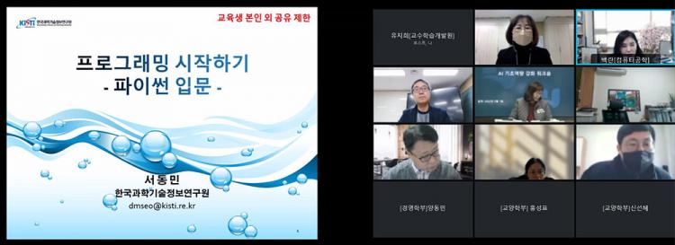 ±³¹«Ã³ AI ±³À°½ÇÁõÈ ÃßÁøÀ§¿øÈ¸(À§¿øÀå ¹é¶õ)¿Í ±³¼öÇнÀ°³¹ß¿ø(¿øÀå ÀåÀ±°æ)Çù¾÷À¸·Î ÁøÇàµÈ À̳¯ ¿öÅ©¼óÀº Çѱ¹°úÇбâ¼úÁ¤º¸¿¬±¸¿ø(kisti) ¼µ¿¹Î ¼¾ÅÍÀåÀ» °»ç·Î ÃÊû, 2022-1Çбâ AI ¼Ò¾ç ±³°ú¸ñ ´ã´ç±³¿ø ¹× AI ÆÀƼĪ ¼ö¾÷ ±³¿ø µî 90¿©¸íÀ» ´ë»óÀ¸·Î ÇÁ·Î±×·¡¹Ö¿¡ ´ëÇÑ ÀÌÇØ¿Í ÆÄÀ̽㠱âÃÊ ¹®¹ýÀ» ÇнÀÇÏ´Â ½Ã°£À» °¡Á³´Ù.