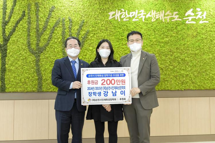 °³²ÀÌ ¾¾´Â ¡°´ëÇÐ ÀçÇÐ ½Ã ¼øÃµ½ÃÀÎÀçÀ°¼ºÀåÇÐȸ ÀåÇлýÀ¸·Î ¼±¹ßµÇ¾î Çо÷¿¡ ´õ ¿ÁßÇÒ ¼ö ÀÖ¾ú´Ù.¡±¸ç, ¡°ÀÌÁ¦ ¾î¿³ÇÑ »çȸÀÎÀ¸·Î ÀÚ¸®¸Å±èÇÑ ¸¸Å Áö¿ª ÈĹèµé¿¡°Ô ÀÛÀ¸³ª¸¶ µµ¿òÀÌ µÉ ¼ö Àֱ⸦ ¹Ù¶õ´Ù.¡±¸ç ÀåÇбÝÀ» ±âŹÇß´Ù.