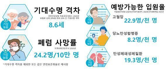 ±¤ÁֽùÎÀÇ ±â´ë¼ö¸í, Àüü »ç¸Á·ü, ¾Ï »ç¸Á·ü, ½ÉÇ÷°ü°èÁúȯ »ç¸Á·üÀº ¾çÈ£ÇÑ ¼öÁØÀ̾úÀ¸¸ç, ¾Ï¹ß»ý·üÀº 2019³â¿¡ À̾î 2020³â¿¡µµ 8´ë Ư¡¤±¤¿ª½Ã ´ëºñ ³·Àº ¹ß»ý·üÀ» º¸¿´´Ù. ¹Ý¸é, ¼Òµæ¼öÁØ °£ ±â´ë¼ö¸í °ÝÂ÷, Æó·Å ¹× ÀϺΠÁúȯ¿¡ ´ëÇØ¼´Â °³¼±ÀÌ ÇÊ¿äÇÑ °ÍÀ¸·Î ³ªÅ¸³µ´Ù.