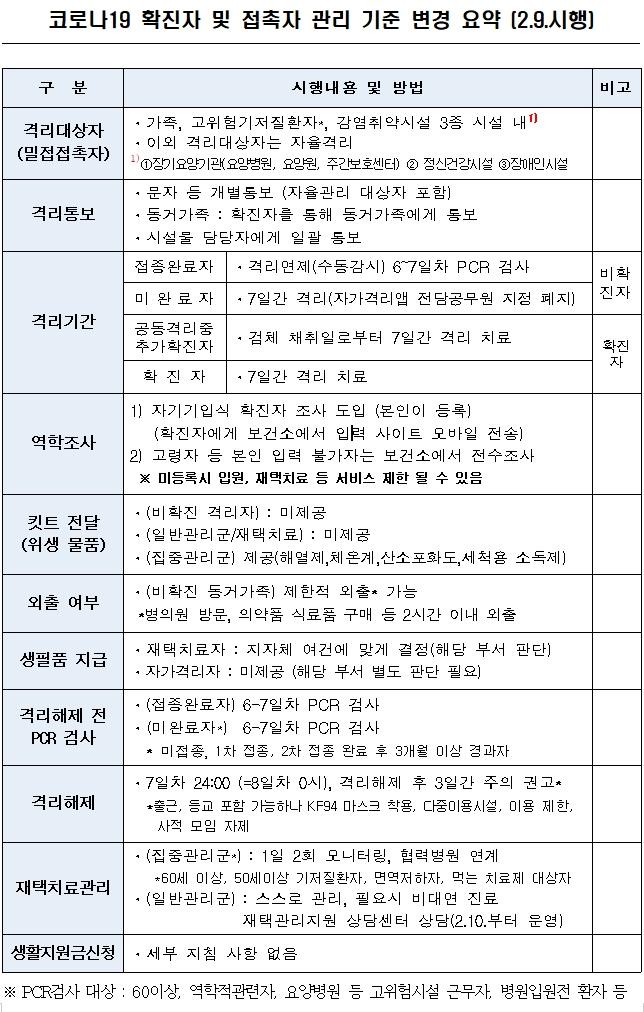 7ÀÏ ÈÄ¿¡´Â ÀÚµ¿À¸·Î °Ý¸®°¡ ÇØÁ¦µÈ´Ù. ÇØÁ¦½ÃÁ¡µµ 8ÀÏÂ÷ Á¤¿À(12½Ã)¿¡¼ 7ÀÏÂ÷ 24½Ã(8ÀÏÂ÷ 0½Ã)·Î Á¶Á¤µÆ´Ù. ´Ù¸¸ À¯Áõ»óÀÚ¿Í °øµ¿°Ý¸®ÀÚ´Â °Ý¸®ÇØÁ¦ Àü¿¡ ¹Ýµå½Ã PCR°Ë»ç¸¦ ¹Þ¾Æ¾ß ÇÑ´Ù.