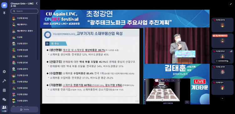 Çà»ç´Â Äڷγª19 È®»ê ¹æÁö¸¦ À§ÇØ ¸ÞŸ¹ö½º Ç÷§ÆûÀ» Ȱ¿ëÇÑ ºñ´ë¸é ¹æ½Ä°ú ¿ÀÇÁ¶óÀÎ ¹æ½ÄÀ» È¥¿ëÇØ ÁøÇàÇßÀ¸¸ç Áö³ 7ÀϺÎÅÍ 10ÀϱîÁö ¿Â¶óÀÎ °Ô´õŸ¿î(Gathertown) ¹× Á¶¼±´ëÇб³ ÇØ¿À¸§°ü(±¤ÁÖÀ̽ºÆ÷Ã÷°æ±âÀå)¿¡¼ ¿·È´Ù.