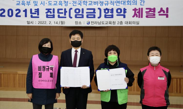 À̳¯ Àå¼®¿õ Àü³²±³À°°¨Àº Àλ縻À» ÅëÇØ ¡°6°³¿ùÀÇ ±³¼·°úÁ¤¿¡¼ ¿©·¯ Â÷·Ê À§±â°¡ ÀÖ¾úÀ¸³ª, ¾çº¸¿Í ŸÇùÀ» ÅëÇØ ±³À°°ø¹«Á÷¿øÀÇ ±Ù·ÎÁ¶°Ç °³¼±°ú ±ÇÀͽÅÀåÀÇ ¹Ø°Å¸§ÀÌ µÇ´Â ÀÓ±ÝÇù¾àÀ» ü°áÇß´Ù.¡±¸é¼ ¡°´ë¸³°ú ¹Ý¸ñÀÇ ¼Ò¸ðÀûÀÎ ±³¼· °üÇà¿¡¼ ¹þ¾î³ª »óÈ£ Á¸Áß°ú ½Å·ÚÀÇ ³ë»ç¹®È°¡ Á¤ÂøµÇ±â¸¦ ¹Ù¶õ´Ù.¡±°í ¸»Çß´Ù.