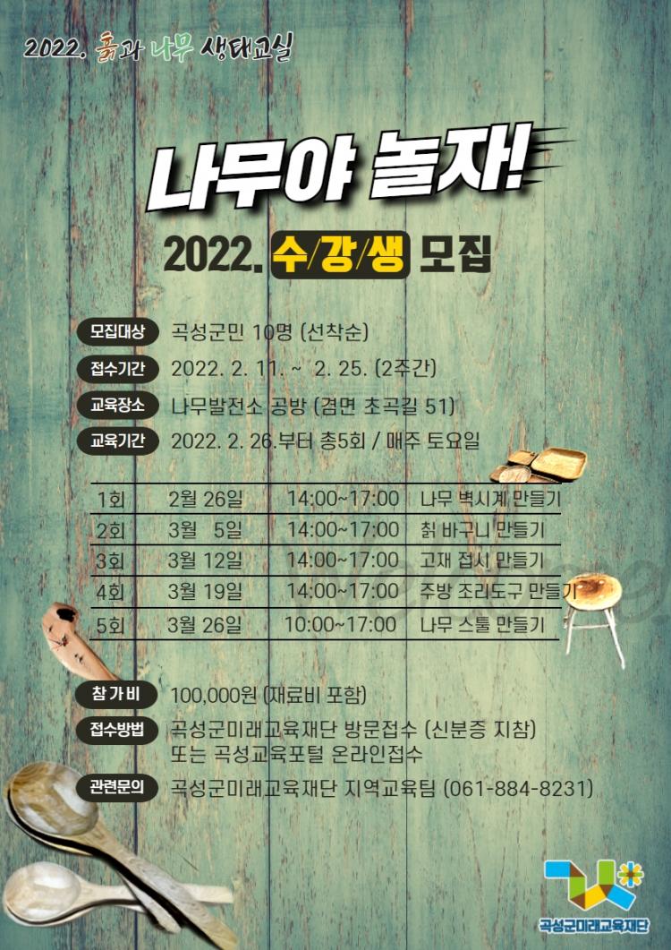 ¸ñ°ø¿¹ »ýű³½ÇÀº °î¼º±º¹Ì·¡±³À°Àç´ÜÀÇ ÀÏ, ³îÀÌ, ¹è¿òÀÌ ÀÖ´Â À¶º¹ÇÕ »ýÅÂȯ°æ±³À°ÀÇ ÀÏȯÀ¸·Î ¸¶·ÃµÈ ÆÐŰÁö Áß »ýųîÀÌ °úÁ¤ÀÌ´Ù.¡®Èë°ú ³ª¹«¡¯¸¦ ÁÖÁ¦·Î ¡®³ª¹«¾ß ³îÀÚ¡¯¸¦ ½ÃÀÛÀ¸·Î 4¿ù ÀüÅë ÇÑ¿Á±¸Á¶ ¾Ë±â Àü¹®°úÁ¤, 6¿ù Ä¡À¯ÀÇ ½£ üÇè °úÁ¤, 7¿ù µµ¿¹ °úÁ¤, 10¿ù ¸ñ°ø¿¹ ¼Ò±Ô¸ð Àü¹®È °úÁ¤ µîÀÌ ´Ùä·Ó°Ô ÁغñµÅ ÀÖ´Ù. Áö¿ªÀÚ¿øÀ» ¿¬°èÇÏ¿© »ýÅÂÀû ¸¶Àε带 ¿Ã¸®´Â »ýű³½Ç°ú »ýÅ ±³À° ÀÏÀÚ¸®±îÁö ´Ü°èº° ½ÉÈ È®´ëµÈ´Ù.