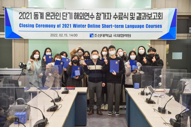 Áö³ 15ÀÏ Á¶¼±´ëÇб³ º»°ü 3Ãþ¿¡¼ ÁøÇàµÈ '2021 µ¿°è ¿Â¶óÀÎ ´Ü±â ÇØ¿Ü¿¬¼ö Âü°¡ÀÚ ¼ö·á½Ä ¹× °á°úº¸°íȸ'´Â ÇÁ·Î±×·¥ Âü¿© ÇлýµéÀ» ºñ·ÔÇØ ÇØ¿Ü ÀڸŴëÇб³ ¹× Á¶¼±´ëÇб³ °ü°èÀÚ µîÀÌ Âü¼®ÇÑ °¡¿îµ¥ ÁøÇàµÆ´Ù.
