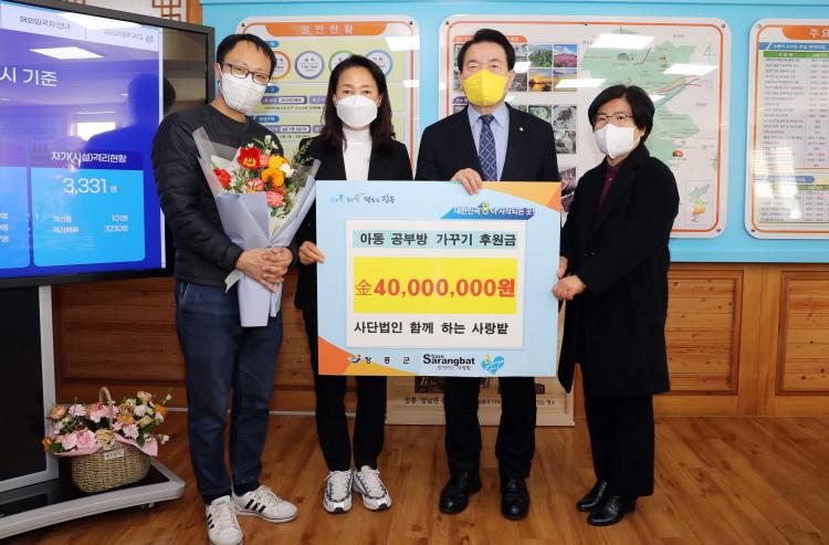 ÀåÈﱺ°ú (»ç)ÇÔ²²Çϴ»ç¶û¹çÀº Áö³ÇØ 5¿ù ¾Æµ¿ °øºÎ¹æ °¡²Ù±â ¹× À§±â°¡Á¤Áö¿ø Çù¾à½ÄÀ» ¸Î°í 20°¡±¸ÀÇ ¾Æµ¿¿¡°Ô °øºÎ¹æÀ» ¼±¹°Çß´Ù.