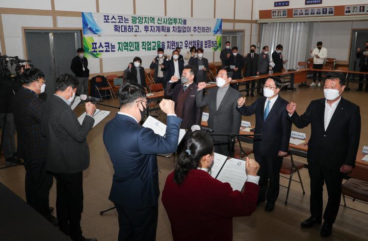 ÇùÀÇȸ´Â ¡°Æ÷½ºÄÚ°¡ Àü ¼¼°è¿¡ ´õºÒ¾î ¹ßÀüÇÏ´Â ±â¾÷½Ã¹ÎÀÇ ÁøÁ¤ÇÑ ¸ð¹ü»ç·Ê°¡ µÇ±â¸¦ ¹Ù¶õ´Ù¡±¸ç, ¡â±¤¾çÁö¿ª¿¡ ½Å»ç¾÷ ÅõÀÚ È®´ë ¹× ±âÁ¸ ÅõÀÚ°èȹ Â÷Áú ¾øÀÌ ÃßÁø, ¡âÁö¿ªÀÎÀçÀÇ Á÷¾÷±³À°À» Áö¿ø°ú ¿ì¼± ä¿ë º¸Àå, ¡âºÒÇÕ¸®ÇÑ ±¸¸ÅÁ¦µµ °³¼±°ú Áö¿ª¾÷ü ÀÔÂûÀ» È®´ëÇÏ´Â Áö¿ª°æÁ¦ Ȱ¼ºÈ ¹æ¾È ¸¶·Ã, ¡â±¤¾çÁö¿ª»ó»ýÇù·ÂÇùÀÇȸ¿¡ µ¿ÂüÇÏ¿© ÇùÀÇȸ°¡ ¿ä±¸ÇÑ »çÇ×À» Àû±Ø ÀÌÇàÇÒ °Í µî ³× °¡Áö »çÇ×À» ÁÖ¹®Çß´Ù.