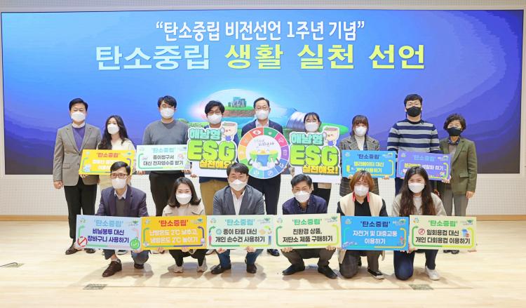 ¸ÕÀú 2ÀÏ Á¤·ÊȸÀÇ¿¡¼ 2050 ź¼ÒÁ߸³ ºñÀü¼±¾ð 1ÁÖ³âÀ» ±â³äÇϰí ź¼ÒÁ߸³ ½ÇÇöÀ» À§ÇÑ Åº¼ÒÁ߸³ ½Çõ ¼±¾ð¹® ³¶µ¶°ú ¼±¼¸¦ ½ÃÀÛÀ¸·Î ù °ÉÀ½À» ½ÃÀÛÇß´Ù.