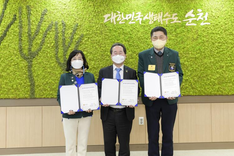 À̹ø ¾÷¹« Çù¾à½Ä¿¡ Çã¼® ¼øÃµ½ÃÀå, ±¹Á¦·ÎŸ¸®Å¬·´ 3610Áö±¸ ¼øÃµÁö¿ª ·ÎŸ¸®Å¬·´ 3Áö¿ª Á¤¸íÈñ ´ëÇ¥, 4Áö¿ª Á¤¿ë±â ´ëÇ¥ ¹× ¼øÃµ·ÎŸ¸®Å¬·´ ´ëÇ¥ 10¸íÀÌ Âü¼®ÇØ, µµ½É ¼Ó Á¤¿øÁ¶¼º¿¡ »óÈ£ Çù·ÂÇϱâ·Î Çß´Ù.