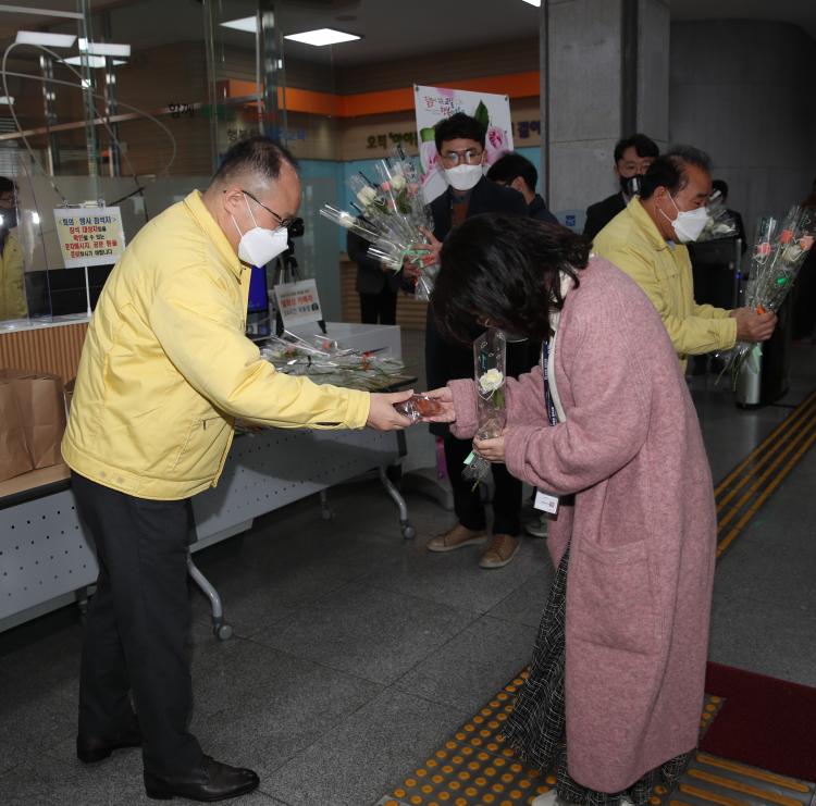 ÀåÈÖ±¹ ±³À°°¨°ú ±èȯ½Ä ºÎ±³À°°¨, ¿À°æ¹Ì ±³À°±¹Àå µîÀº À̳¯ ¿ÀÀü Ãâ±Ù±æ Á÷¿øµéÀ» °Ý·ÁÇÏ¸ç ¹Ì¸® ÁغñÇÑ »§°ú Àå¹Ì²ÉÀ» Àü´ÞÇß´Ù.
