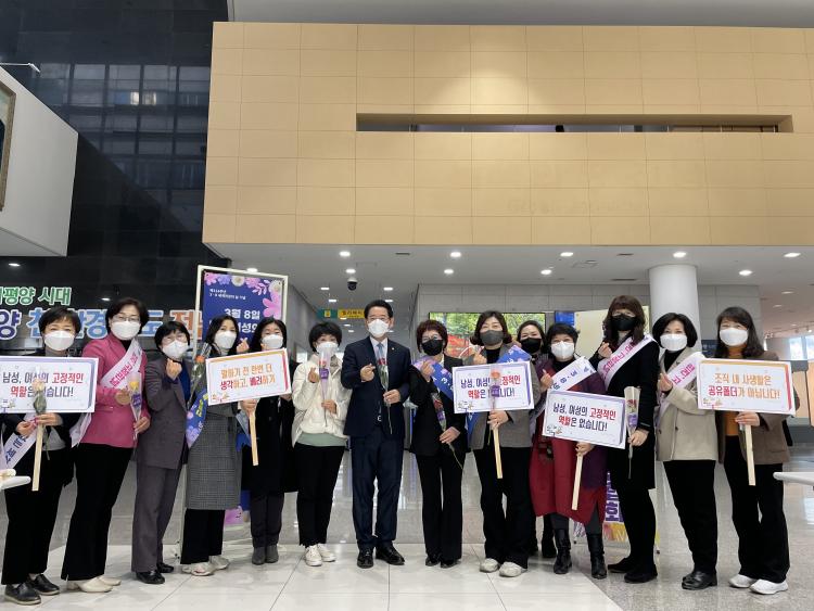 À̳¯ Àü³²µµÃ»¿¡¼´Â ÃâÀÔ¹® 3°÷¿¡¼ Ãâ±ÙÇÏ´Â Á÷¿øµé¿¡°Ô Æí°ß°ú °íÁ¤°ü³ä, Â÷º° ¾ø´Â Á¶Á÷¹®È Á¶¼º µî ½½·Î°ÇÀ» ¿ÜÄ¡¸ç, ¿©¼ºÀÇ ³¯ Àǹ̸¦ µÇ»õ±â´Â ½Ã°£À» °¡Á³´Ù.