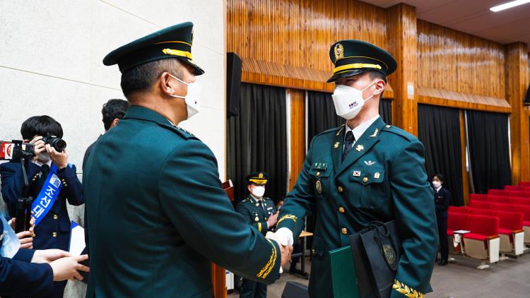 ƯÈ÷ ±º»çÇаúÀÇ ¹è°ÇÈñ ¼ÒÀ§´Â À°±ºÂü¸ðÃÑÀå»ó°ú ROTCÁß¾ÓȸÀå»óÀ» µ¿½Ã¿¡ ¼ö»óÇÏ´Â ¿µ¿¹¸¦ ¾È¾Ò´Ù. ¹è ¼ÒÀ§´Â ÅõöÇÑ ±ºÀÎ Á¤½Å°ú Çо÷ ¼ºÀûÀÌ ¿ì¼öÇÑ Á¡À» ³ô°Ô Æò°¡¹Þ¾Æ Çбº´Ü ´ëÇ¥ »ç°üÈ帻ýÀ¸·Î ¼±Á¤µÅ À°±ºÂü¸ðÃÑÀå»óÀ» ¹Þ¾Ò´Ù.