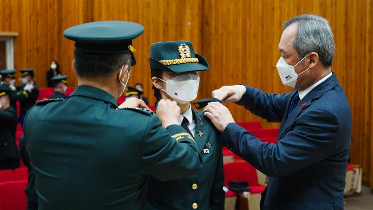 À̾î À¯Á¤À± ¼ÒÀ§°¡ 52¸íÀÇ »ç°üÈ帻ý ´ëÇ¥·Î ÀÓ°ü»ç·ÉÀå°ú °è±ÞÀåÀ» ¼ö¿©¹Þ¾Ò´Ù. »ç°üÈ帻ýµéÀº »óÈ£ °£¿¡ °è±ÞÀåÀ» ºÎÂøÇØ Àå±³·Î¼ÀÇ ½ÃÀÛÀ» ¾Ë·È´Ù.